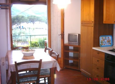 Appartamento Bilocale: cucina, camera con letto matrimoniale e letto a castello, bagno, veranda.